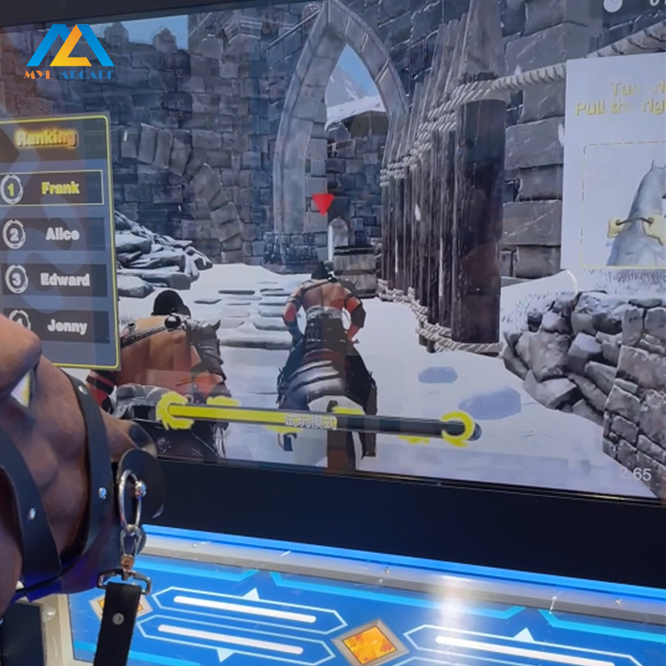 The Dragon Knight Jockey Simulator arcade presents players with both difficulty and excitement. From navigating winding tracks to competing against others in multiplayer game machine mode, the race isn’t just about speed – it's about strategy and skill. The Medieval Jousting Arcade Game elements further increase the challenge, making it more than just a standard horse racing game.